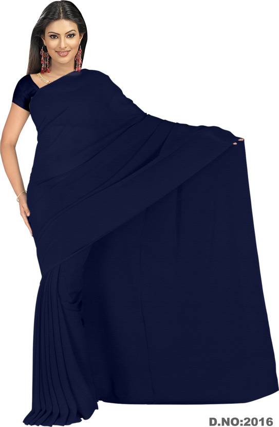 Vardan PRINTS Solid/Plain Bollywood Chiffon Saree (Dark Blue)