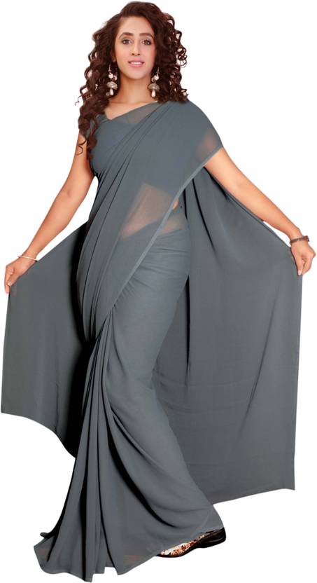 Vardan PRINTS Solid/Plain Bollywood Georgette Saree (Grey)