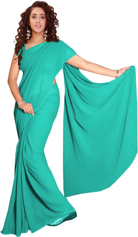 Vardan PRINTS Solid/Plain Bollywood Georgette Saree (Green)