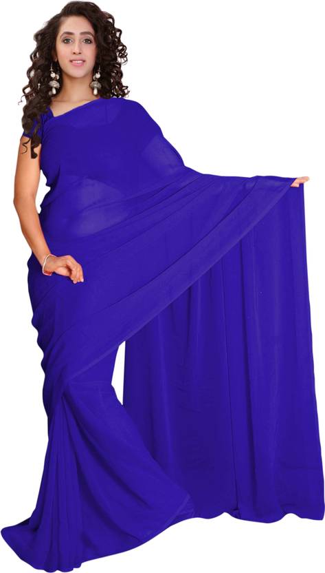 Vardan PRINTS Solid/Plain Bollywood Georgette Saree (Dark Blue)