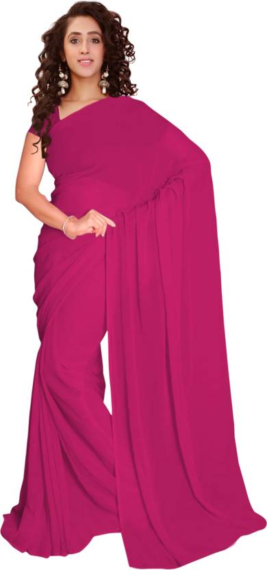 Vardan PRINTS Solid/Plain Bollywood Georgette Saree (Purple)