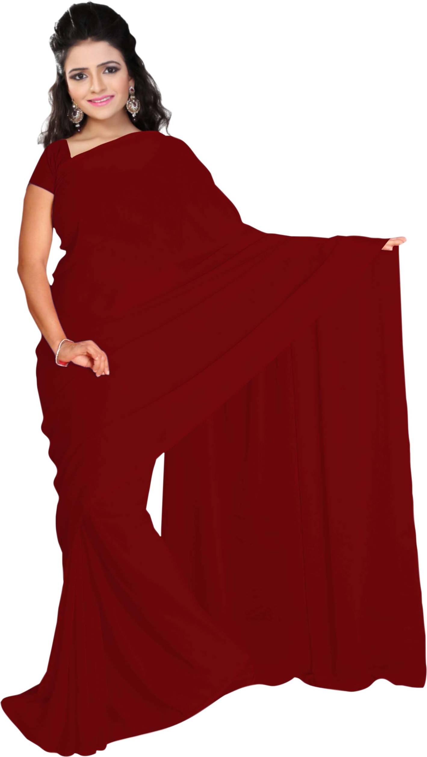 Vardan PRINTS Solid/Plain Bollywood Georgette Saree (Maroon)