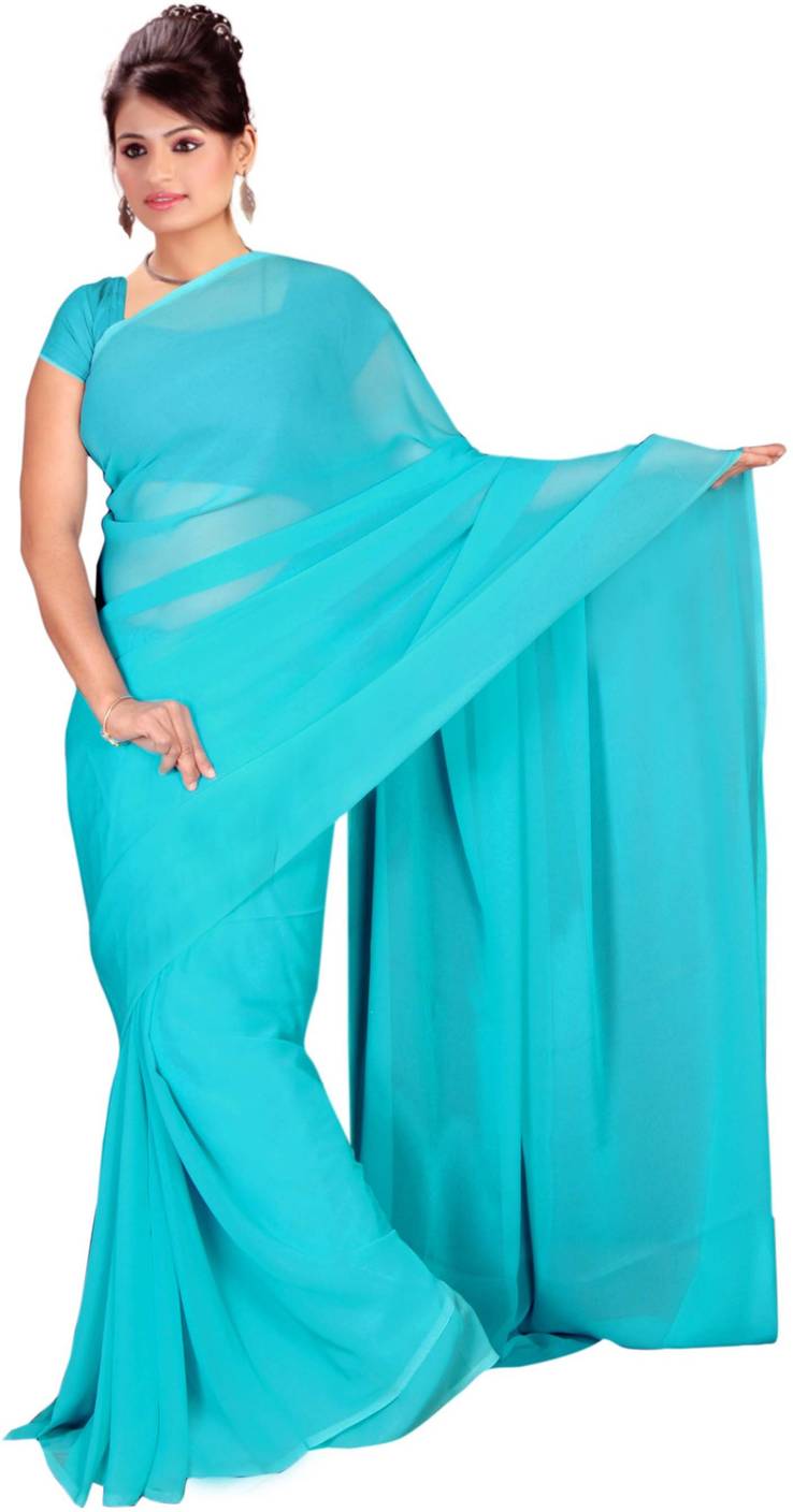 Vardan PRINTS Solid/Plain Bollywood Georgette Saree (Light Blue)