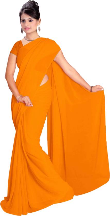 Vardan PRINTS Solid/Plain Bollywood Georgette Saree (Orange)