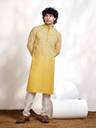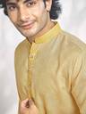 Subtle Elegance: Fawn-colored kurta with a subtle macaroon yellow self-design for a touch of warmth.