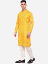 Men Solid Cotton Linen Straight Kurta (Yellow)