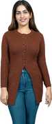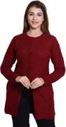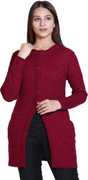 Varenyam Self Design Round Neck Casual Women Maroon Sweater