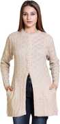 Varenyam Self Design Round Neck Party Women Beige Sweater