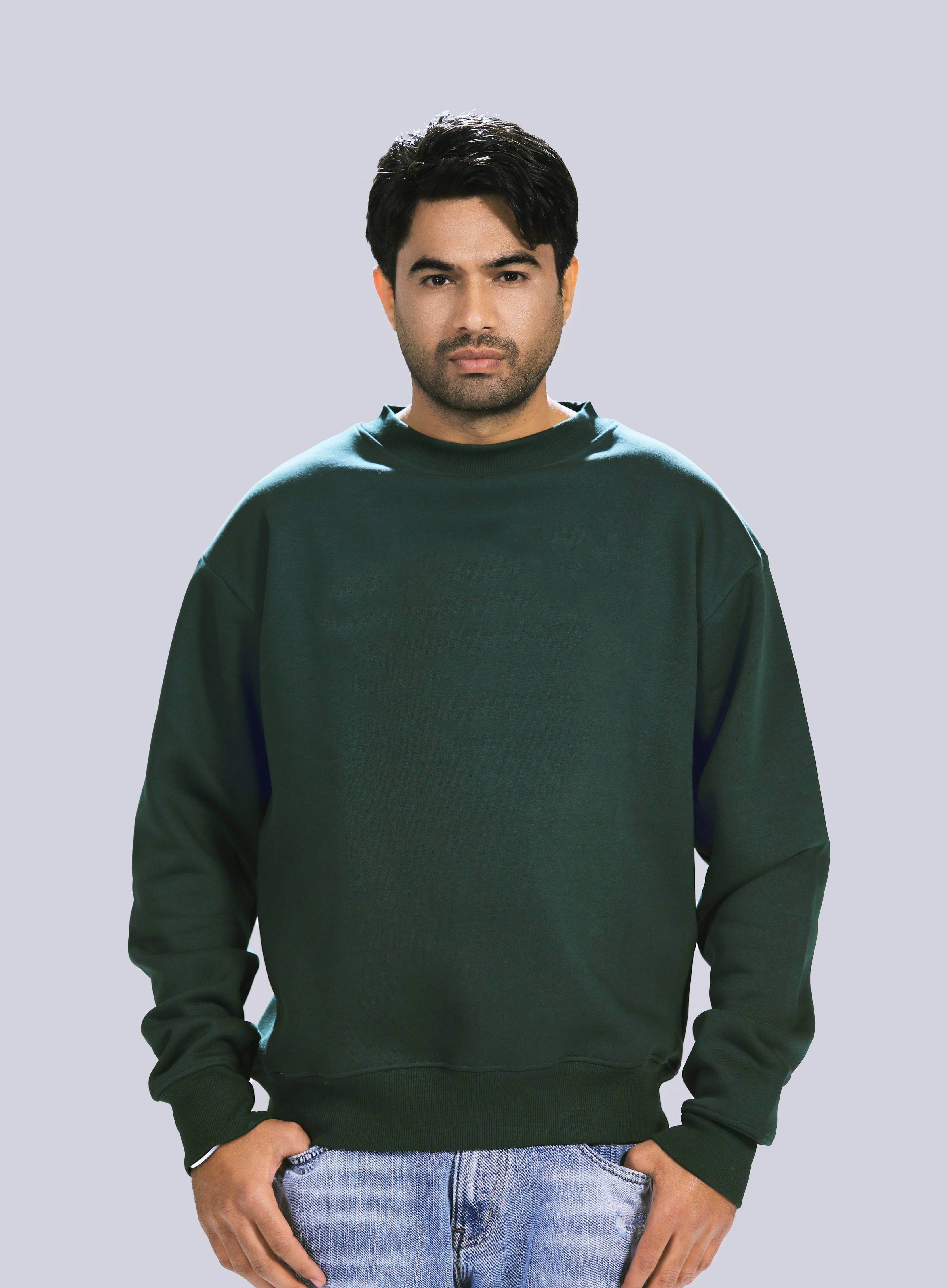 This dark green sweatshirt features a comfortable mock neck and a relaxed fit, making it ideal for casual wear. Crafted from a soft fabric, it offers both warmth and style. The design is simple and versatile, suitable for various occasions. Compatible products include: jeans, joggers, chinos, t-shirts, and sneakers.