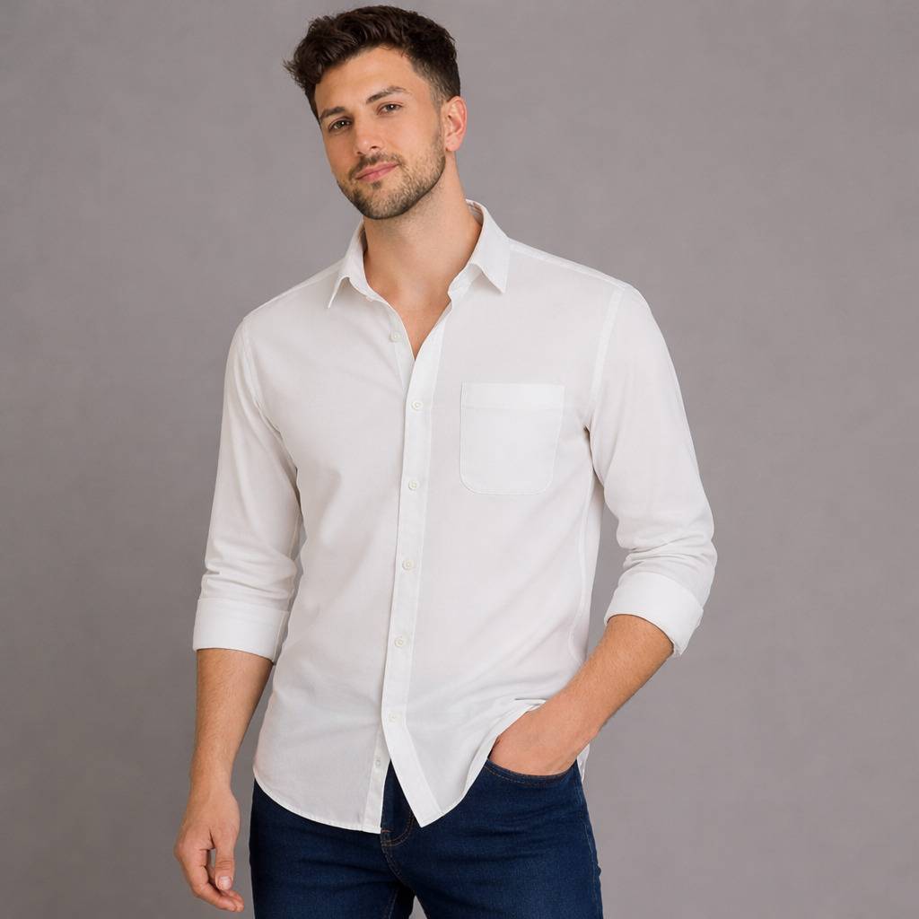 Its crisp white colour makes it versatile and easy to pair with jeans, chinos, or trousers—perfect for office wear, casual outings, and semi-formal events. Soft on the skin, durable, and easy to maintain, this shirt is a must-have essential for every wardrobe.