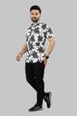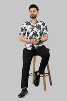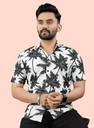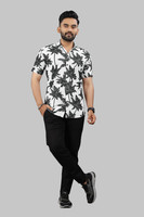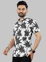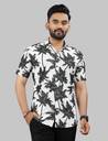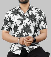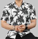 The shirt features an all-over botanical print with palm trees, adding a relaxed and casual touch to your look. The pattern is spread evenly across the fabric, making sure every part of the shirt has a balanced and stylish design. The tropical print gives off a light and refreshing feel, making it a good option for laid-back days or vacations.