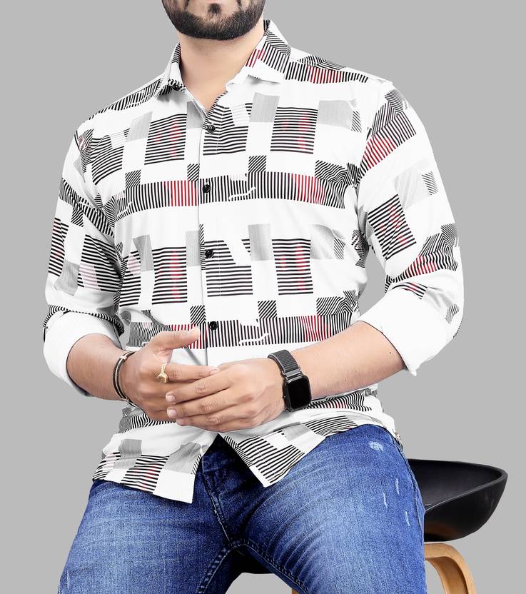 Varidashi Men Striped Casual White, Black Shirt