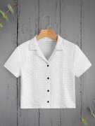 The cropped length gives the shirt a fresh and stylish look, allowing you to wear it in different ways. It sits slightly above the waist, making it easy for you to pair with high-waisted jeans, skirts, or trousers. The length is carefully designed to provide a structured and relaxed appearance. This length also allows for better air circulation, keeping you cool and at ease throughout the day.