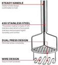 Stainless Steel Potato Masher, Dual Function Design, Professional Stainless Steel Potato Masher, Kitchen Tool for Cooking Food; Making Potato Mash, Banana Mash, Pumpkin Mash