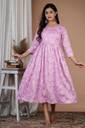 Women Printed Viscose Rayon Gown Kurta (Pink, White)