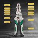 Package Content: You will receive 1 piece of 18-in-1 foldable wire stripper, which offers excellent hardness, wear resistance and long-lasting durability, serving you for a long time. Strong Practicality: This foldable multifunctional wire stripper is designed to handle various electrical tasks, such as wire cuttings, wire stripping, crimping and more. It’s an essential tool for electricians and DIYers. Convenient Design: Featuring a quick-change locking mechanism, this tool allows for effortless attachment swaps while ensuring safe storage. The design also prevents accidental slips, keeping your hands protected during use. Comfortable Grip: Our wire stripping pliers feature an ergonomic handle and anti-slip design, allowing you to grip it easily and reducing hands tiredness. Good Helper: This wire stripper tool is ideal for industrial, electrical and home applications. Perfect for home renovations, construction projects, motor repairs, electrical wiring fixes, and DIY crafts.