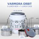Introducing the Varmora Orbit Stainless Steel Lunch Box, a perfect fusion of durability and functionality. Designed with an air-tight plastic red lid, this lunch box ensures your meals stay secure and fresh.
