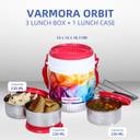 Introducing the Varmora Orbit Stainless Steel Lunch Box, a perfect fusion of durability and functionality. Designed with an air-tight plastic red lid, this lunch box ensures your meals stay secure and fresh.
