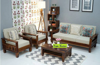 VARSHA FURNITURE Sheesham Wood Premium Quality 5 Seater Sofa Set For Living Room Furniture Fabric 3 + 1 + 1 Sofa Set (Natural Brown, DIY(Do-It-Yourself))