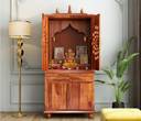 Curated with solid wood, this temple boasts an elegant wood grain texture that showcases the material’s natural beauty. Moreover, the wood is renowned for its sturdiness and durability, making this temple a robust piece of furniture that can withstand regular rigours. Furthermore, it is naturally resistant to rust, stains, termites, moisture, and dust, ensuring a long-standing pristine appearance. Additionally, free from toxins and harmful chemicals, this eco-friendly furniture is complemented by stylish yet robust metal knobs, combining consciousness with modern aesthetics.