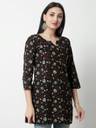 Cotton Printed Top, Floral Print , 3/4th Sleeve, V Neck, Straight