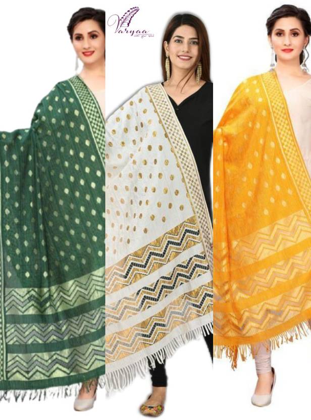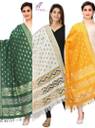 Silk Blend Self Design Green, Yellow, White Women Dupatta