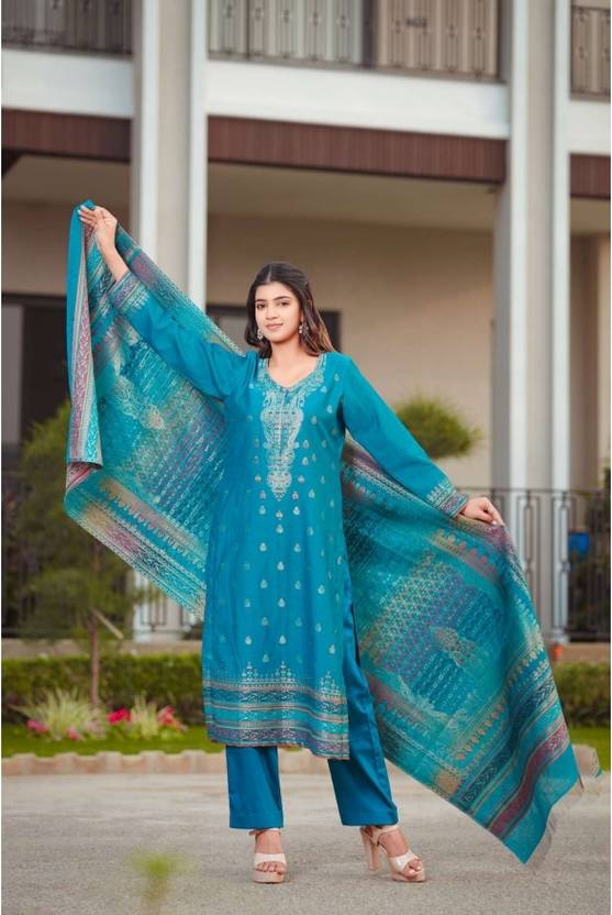 Introducing our exquisite Stylish Jacquard Cotton Suit Dress Material for Women – a perfect blend of elegance, craftsmanship, and modern fashion sensibilities. This stunning dress material set offers you the opportunity to create a personalized and breathtaking ensemble that reflects your unique style. Crafted from high-quality Jacquard Cotton, this dress material is a testament to luxury and comfort. The Jacquard weaving technique lends a rich texture and intricate patterns to the fabric, adding depth and dimension to your outfit. The design of this dress material is a true work of art. Intricately woven patterns and motifs adorn the fabric, creating a harmonious blend of tradition and contemporary aesthetics. The versatility of Jacquard fabric allows for the creation of both subtle and elaborate designs, making it suitable for various occasions.