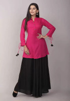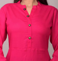 The kurti and skirt feature a straightforward, all-solids design. This means that both garments are devoid of any patterns, prints, or intricate details. Instead, they rely on the pure, uniform color and texture of the viscose rayon fabric to create a clean and minimalist look. This design choice exudes simplicity and versatility, allowing the wearer to easily mix and match these pieces with other items in their wardrobe for various occasions