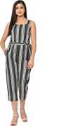 Vashist women's navy beige crepe striped tie knot jumpsuit