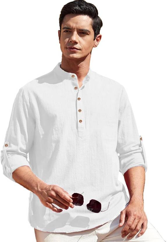 This Cotton Blend short kurta is perfect for men who value style and comfort. Its versatile design makes it ideal for any occasion—festivals, parties, or casual outings. Product Details 📋 👨🦰 Gender: Men 🎨 Pattern: Solid 🧵 Design Type: Plain 🔘 Closure: Button 👕 Sleeve: Full Sleeve (Roll-Up Option) ⬆️ Waist Rise: Mid-Rise 🪡 Collar: Mandarin/Chinese ✂️ Hemline: Curved 🌿 Fabric: Cotton Blend 📏 Product Length: Short 📦 Pack of: 1 Material & Care 🧺 Fabric: Cotton Blend Wash: Suitable for hand wash and machine wash. How to Style 🎯 Pair it with dark-wash denim or linen trousers for a casual look. Dress it up with a pair of churidar or slim-fit pants for festive occasions. Add leather sandals or loafers and a wristwatch for a classy finish. Roll up the sleeves for a relaxed vibe during daytime events. This short kurta seamlessly blends traditional elegance with modern styling, making it a wardrobe essential for every man! 👌"