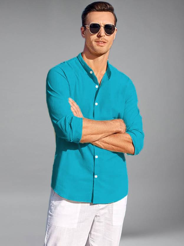 Men Slim Fit Solid Mandarin Collar Casual Shirt