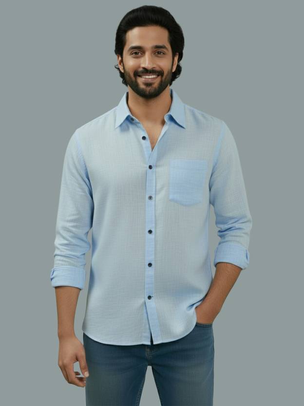 Men Slim Fit Solid Spread Collar Casual Shirt