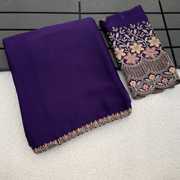 Embroidered, Solid/Plain Bollywood Georgette Saree (Purple)