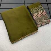 Embroidered, Floral Embroideries, Sequin embroidered, Festive Look, Occasional Sari/Party Sari, Fancy Border