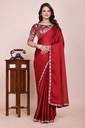 VASTRA DRAPE Solid/Plain, Embroidered Bollywood Silk Blend Saree (Maroon)