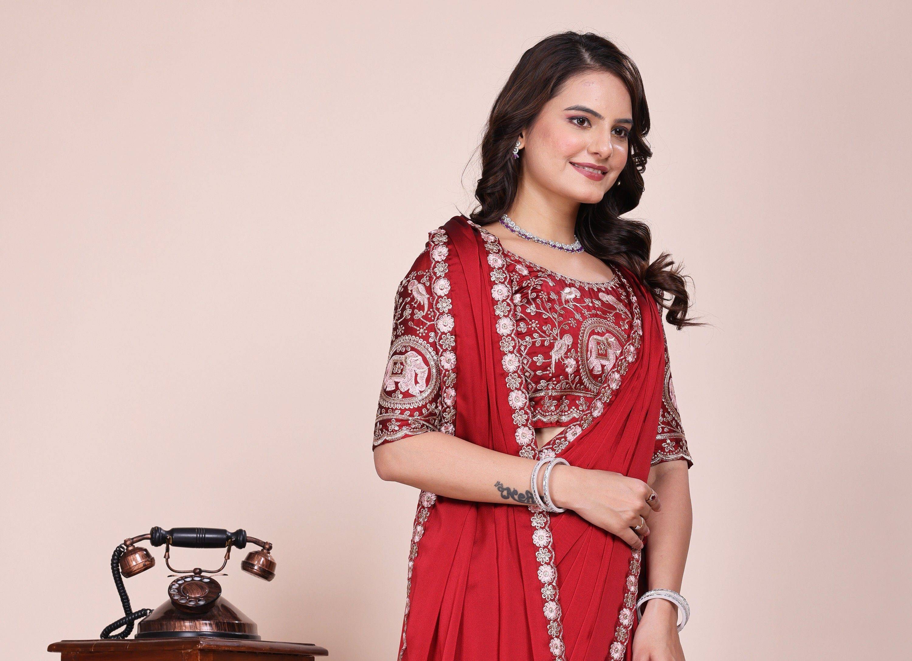 VASTRA DRAPE Solid/Plain, Embroidered Bollywood Silk Blend Saree (Maroon)