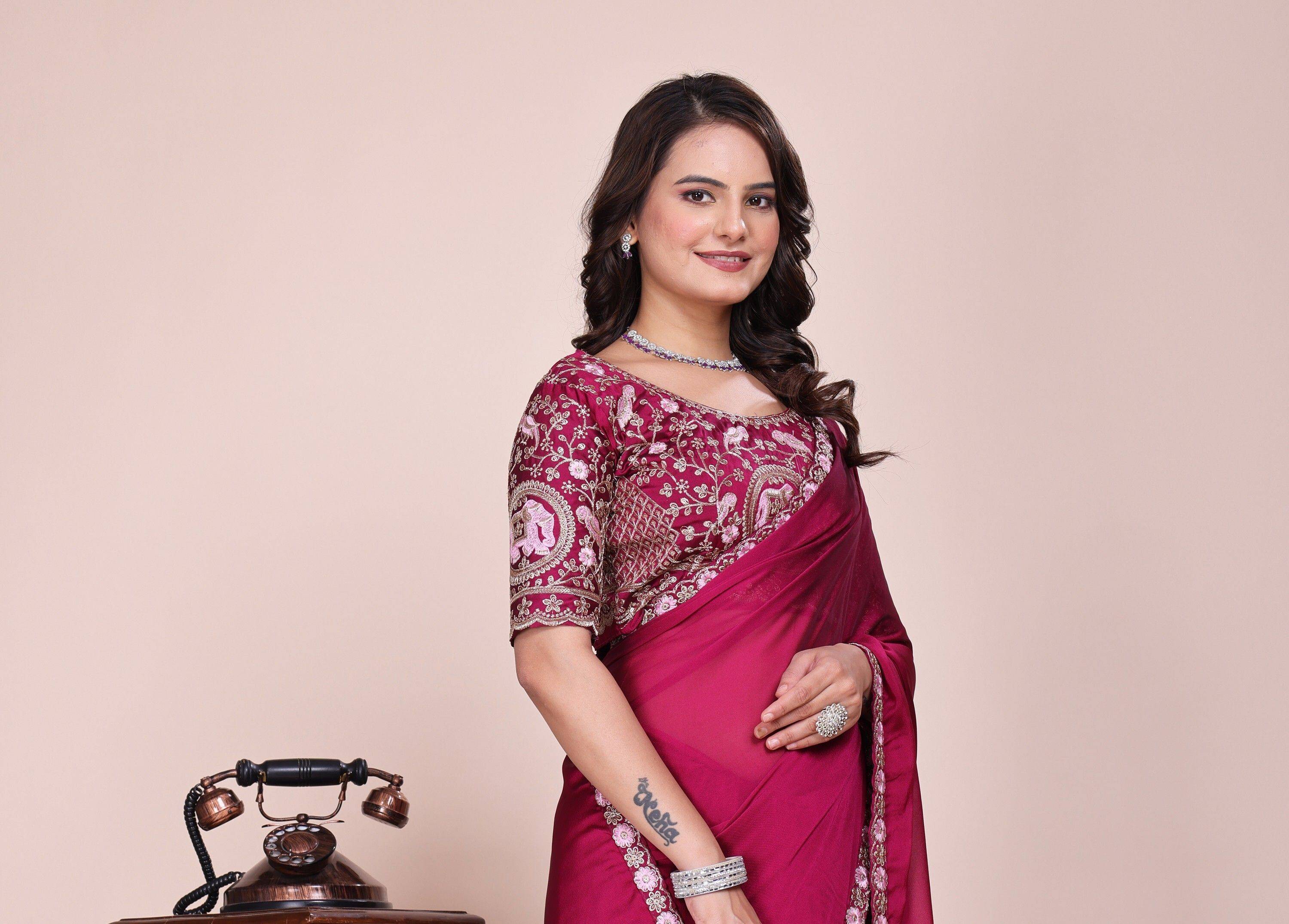 Elevate your ethnic wardrobe with this stunning Embroidered Saree, designed for the modern woman who loves a touch of tradition. Crafted from a premium, smooth-draping fabric, this saree features a rich LAVENDER hue that radiates elegance.