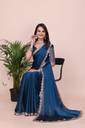 LabelVASTRA Solid/Plain, Embroidered Bollywood Silk Blend Saree (Blue)