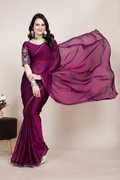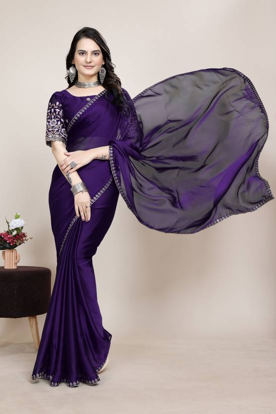 V AMAN FASHION Embroidered Bollywood Silk Blend Saree (Purple)