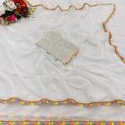 V AMAN FASHION Solid/Plain, Self Design, Embroidered Bollywood Georgette Saree (Yellow)