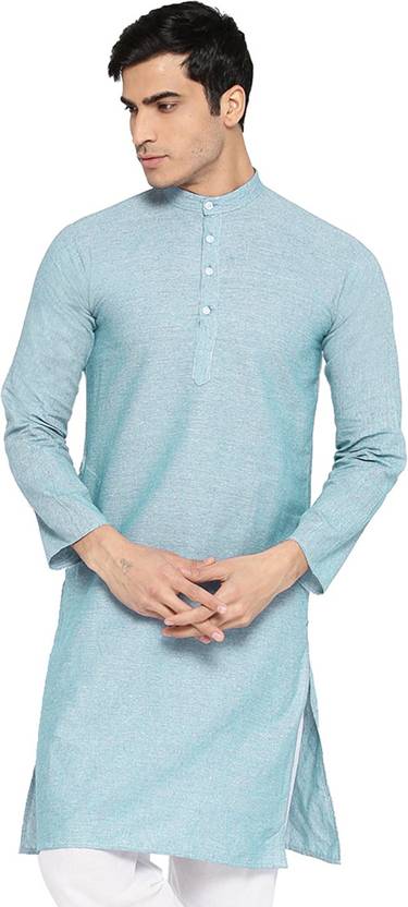 Vastraa Fusion Men Solid Cotton Blend Straight Kurta (Light Blue)