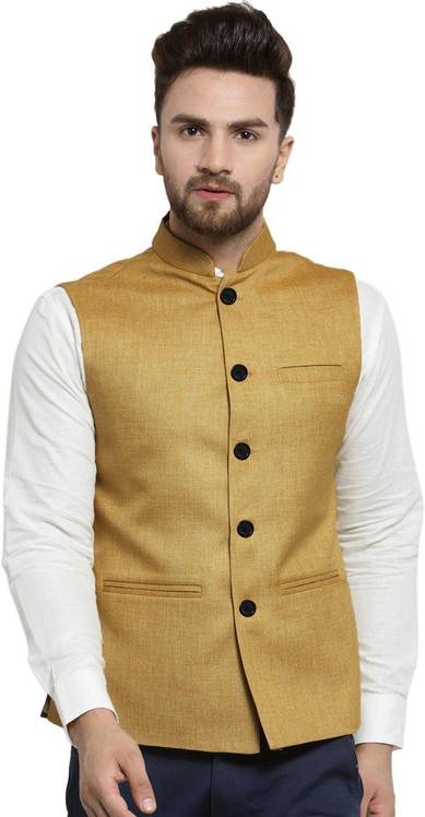 {About Product} - Type - Regular Look in Solid Plain Colours, Fabric - Cotton Jute, Style - Traditional Ethnic, Sleeveless, Mandarin Neck, Buttoned Closure, Regular Fit, Inner Lining - Dobby, Design Details - Look your Absolute Best in this Super-Stylish yet Contemporary Ethnic Waistcoat from Brand Vastraa Fusion. Team it with Indian Traditional outfits such as Kurta Payjama, Jodhpuri Pants, Chudidhar Pants or with Western outfits such as Formal Trousers or Jeans for Perfect Appeal