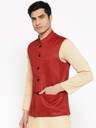 {About Product} - Type - Regular Look in Solid Plain Colours, Fabric - Cotton Jute, Style - Traditional Ethnic, Sleeveless, Mandarin Neck, Buttoned Closure, Regular Fit, Inner Lining - Dobby, Design Details - Look your Absolute Best in this Super-Stylish yet Contemporary Ethnic Waistcoat from Brand Vastraa Fusion. Team it with Indian Traditional outfits such as Kurta Payjama, Jodhpuri Pants, Chudidhar Pants or with Western outfits such as Formal Trousers or Jeans for Perfect Appeal