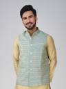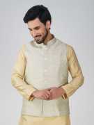 {About Product} - Type - Regular Look in Solid Plain Colours, Fabric - Cotton Jute, Style - Traditional Ethnic, Sleeveless, Mandarin Neck, Buttoned Closure, Regular Fit, Inner Lining - Dobby, Design Details - Look your Absolute Best in this Super-Stylish yet Contemporary Ethnic Waistcoat from Brand Vastraa Fusion. Team it with Indian Traditional outfits such as Kurta Payjama, Jodhpuri Pants, Chudidhar Pants or with Western outfits such as Formal Trousers or Jeans for Perfect Appeal