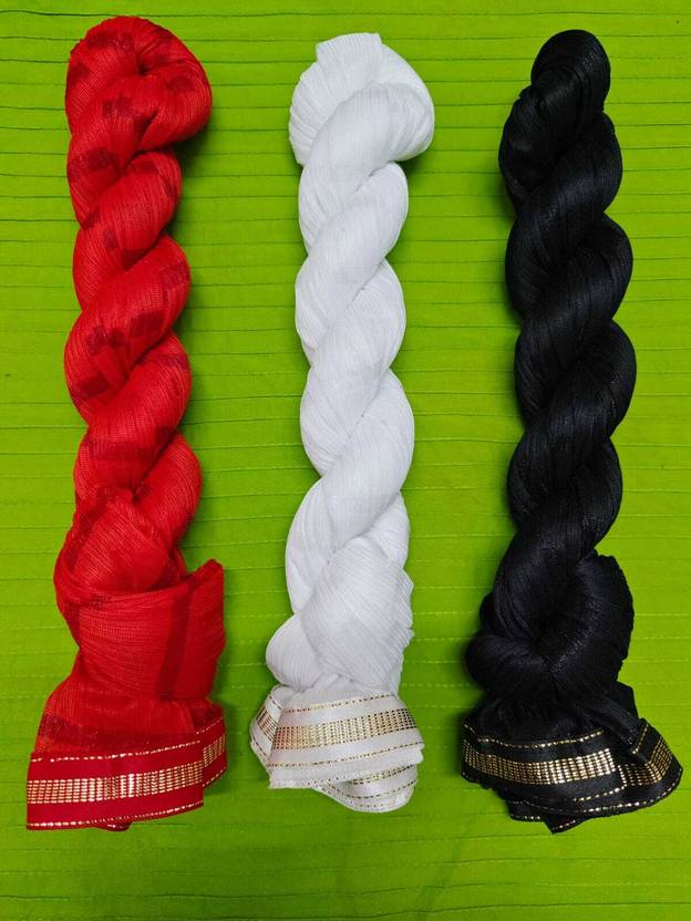 LYCRA BLEND 2 SIDE FANCY LACE DUPATTAS FOR ALL YOUR CASUAL WEAR NEEDS PACK OF 3 DUPATTAS WHITE , BLACK , RED