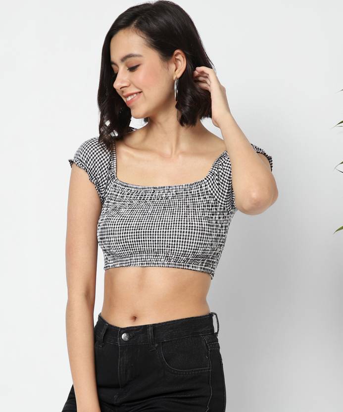 VASTRADO Casual Checkered Women Black Top