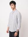 The Blue & White Vertical Stripes Mandarin Shirt from Vastrado brings together charm and modern comfort in one stunning piece. This shirt is made from 100% cotton that feels smooth and breathable on your skin. The subtle color & striped pattern add a festive shine, making it perfect for casual occasions where you still want to stand out. Full sleeves and a stylish high-neck collar give it a unique and fashionable edge. Whether you're heading to a chilled gathering or just stepping out in style, this shirt makes dressing up effortless. Its vibrant look pairs well with jeans, trousers, or ethnic lowers. Available in multiple sizes to suit every body type and preference.