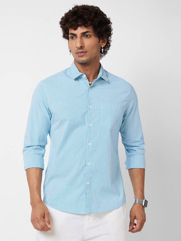 Men Regular Fit Striped Spread Collar Casual Shirt
