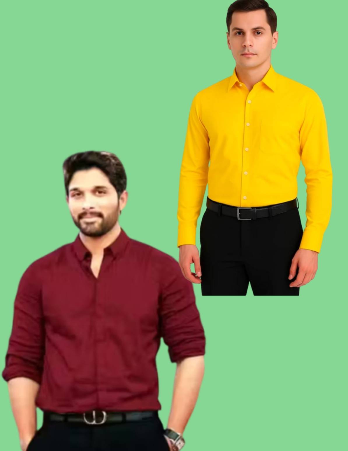 VASTRAM Men Solid Formal Maroon, Yellow Shirt (Pack of 2)