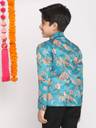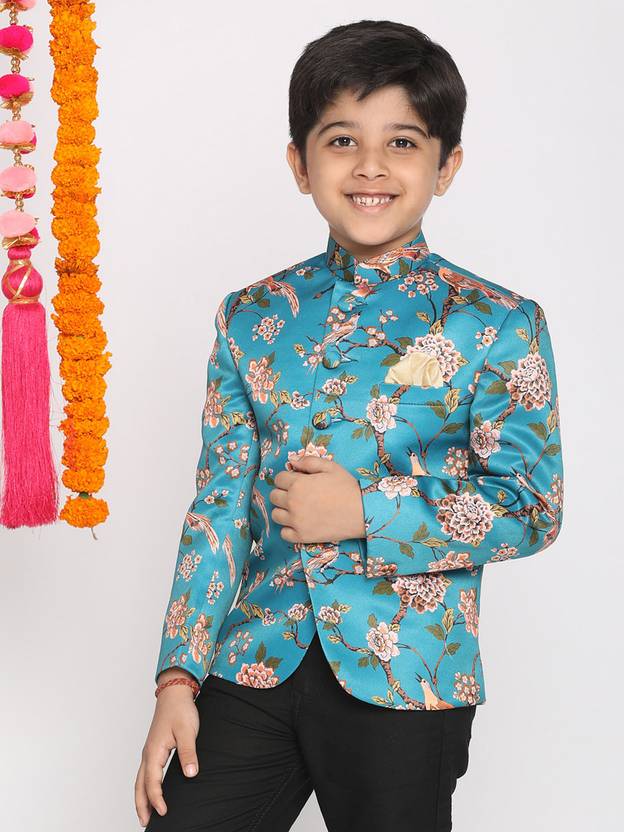 VASTRAMAY Floral Print Mandarin Festive Boys Blazer (Blue)